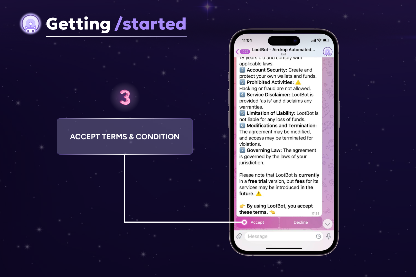 Now you are all set up. Let's move to [wallet-set-up](https://docs.lootbot.xyz/lootbot/telegram-bot/product-guide/wallet-set-up "mention") to set up your wallet and start looting.&#x20;